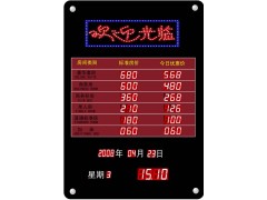 一、顯示世界時區內的各城市時間;顯示當前年、月、日,星期及北京時間;二、可顯示酒店配置的客房價目表:豪華商務套房、商務標準套房、單人間、普通標房等價格信息。三、可按用戶實際需要的尺寸或顯示的內容設計、定制;采用微電腦芯片設計,臺灣數碼管顯示,世界時區可根據用戶要求增加或指定顯示具體的城市。也可為用戶提供