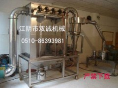 本機由主機、輔機、電控箱三部分組成,具有風選、無篩網、細度均勻等特點,可連續生產,廣泛應用于制藥、食品、化工等行業物料的微粉作業。粉碎細度可以通過調速電機自主控制,物料最細可以達800目,成品通過旋風分離器自動流出,整個作業過程產生的粉塵全部通過脈沖除塵經布袋收集,無揚塵污染。