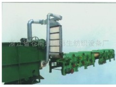本廠最新研制的再生棉生產線流水線,由2臺自動開花機,1臺自動送花機,2臺清彈機組和成,該生產線需要2-3人,需要動力60-70千瓦,每小時產250斤左右的再生棉,該產品具有設計合理,操作方便,操作工人少,排塵性好,噪聲小,對各種纖維損傷甚微等特點,是加工再生棉最完善生產設備,生產的再生棉可與原棉相媲美,設備采用流水線安裝,要求車間長度20米、高度不低與4米、寬度不小于2米;將開花機與清彈機并排安裝時,要求車間長度12米、高度不低與4米、寬度不小于4米。 |